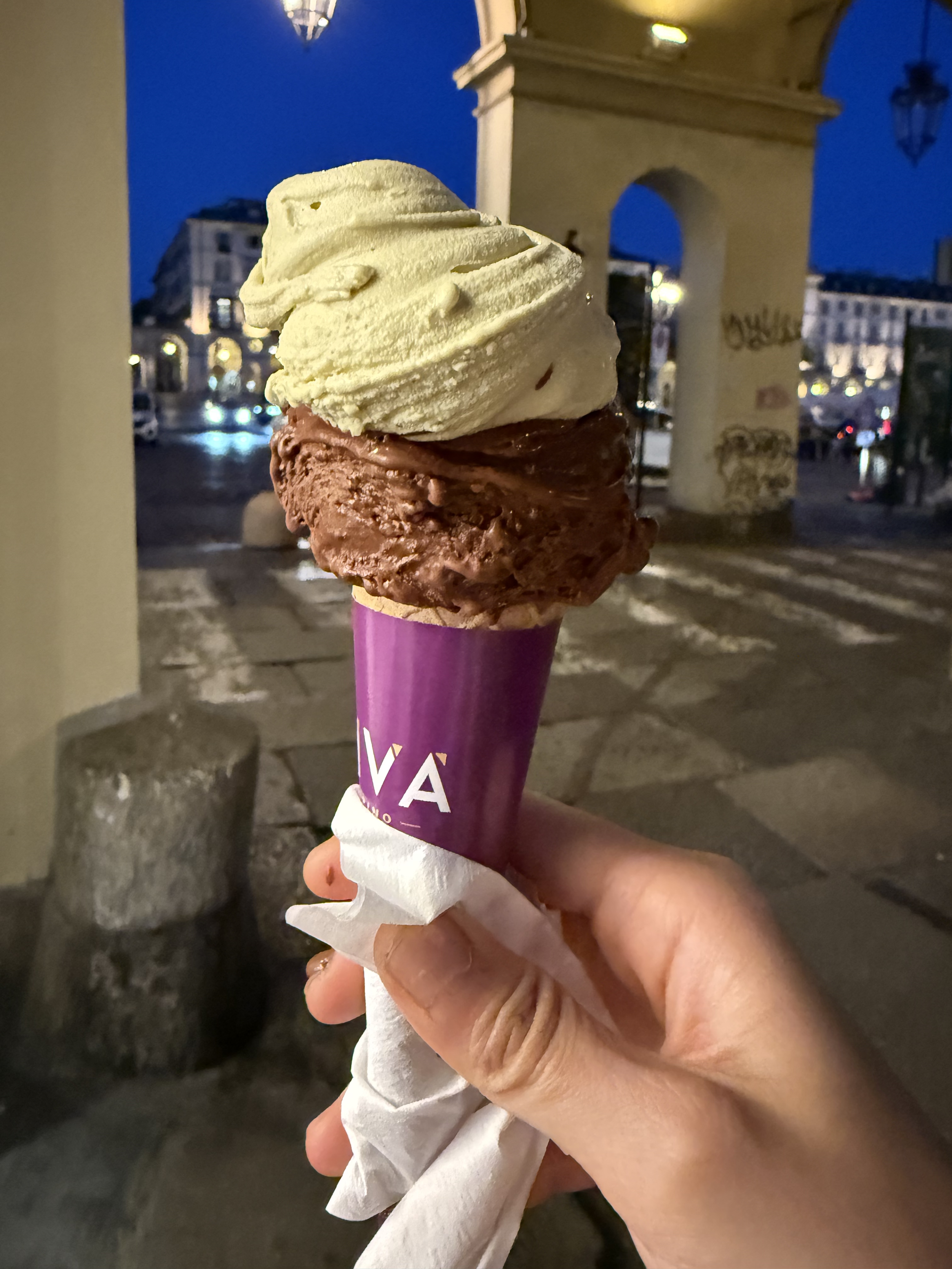 You can't visit Turin without a classic Italian Gelato! This delicious pistachio and chocolate cone was a sweet reward after a day of discovery.