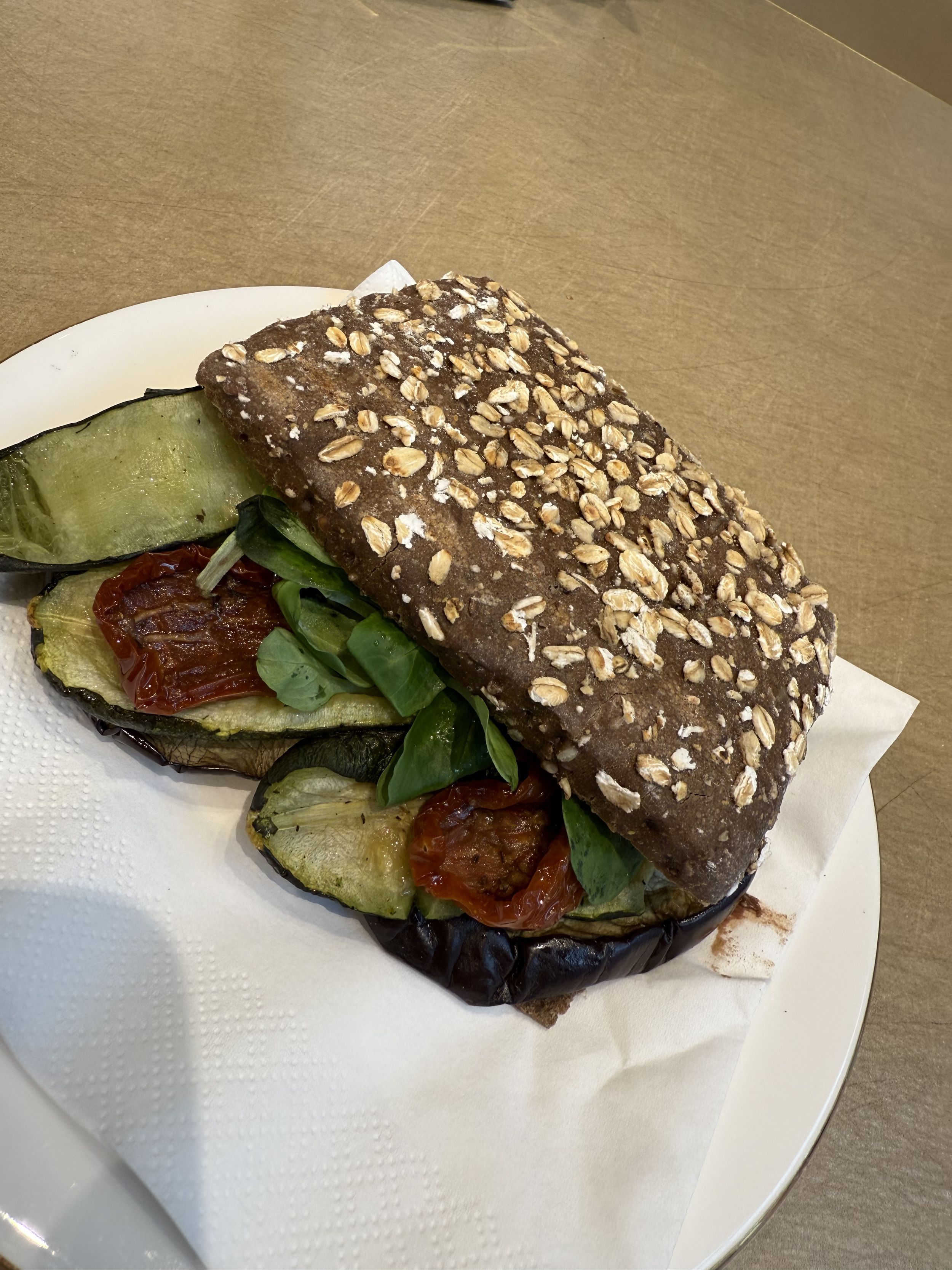 Balancing indulgence with wellness! This fresh grilled vegetable sandwich on oat bread in Turin was a healthy lunch option to keep me energized for more sightseeing.